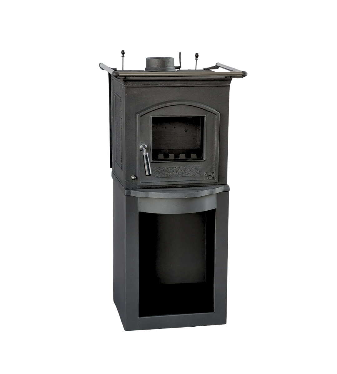 Neben Sockel, Herdstangen und Kochplatte ist Pluto II außerdem mit einem Dreh-/Fächerrost sowie einer Drosselklappe ausgestattet.